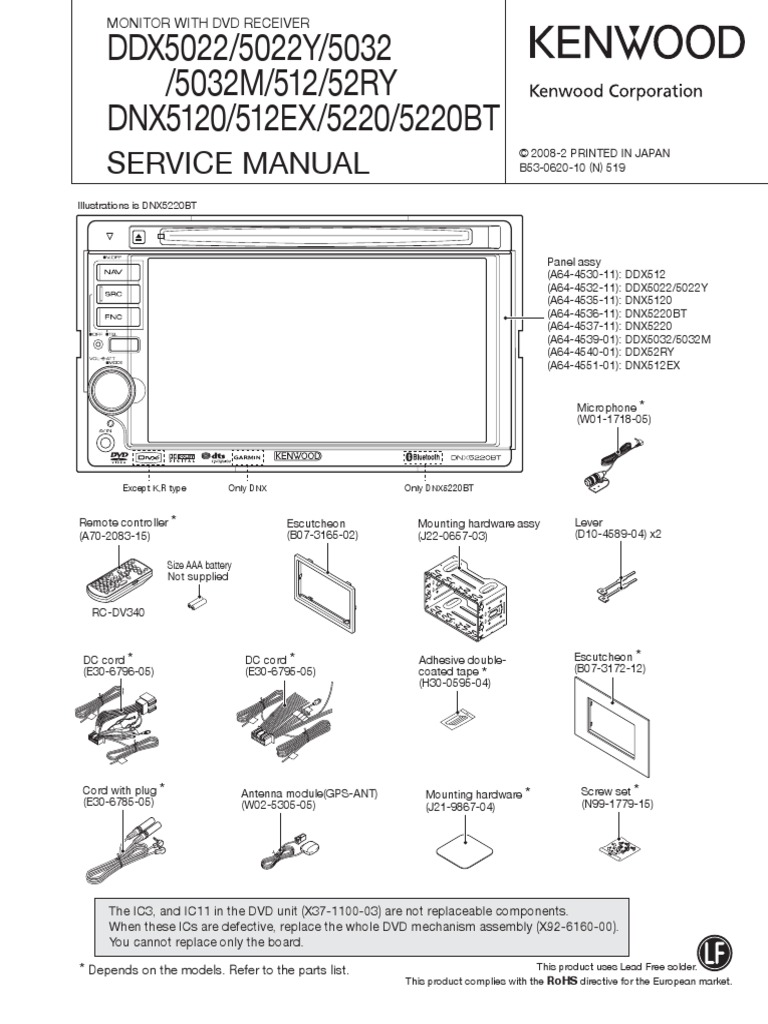 Kenwood Ddx5022 Y Ddx5032 M Ddx512 Ddx52ry Dnx5120 Dnx512ex Dnx5220 Bt Sm Electronics Equipment